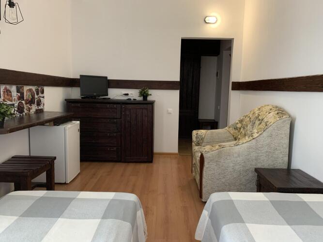 Гостиница На Набережной, адрес на карте Анапа, пр-д Крутой, д.4, с описанием номеров и доступностью онлайн бронирования на ресурсе ВашОтель.RU , цены проживания и удобства.