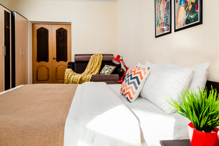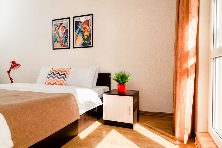 Номер уютно обставлен и оснащён необходимым, чтобы отдохнуть после долгого и насыщенного дня. Имеются телевизор. Оснащение зависит от выбранной категории номера.