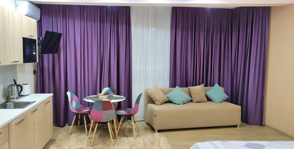 Номер уютно обставлен и оснащён необходимым, чтобы отдохнуть после долгого и насыщенного дня. Имеются телевизор. Оснащение зависит от выбранной категории номера.