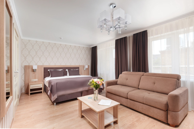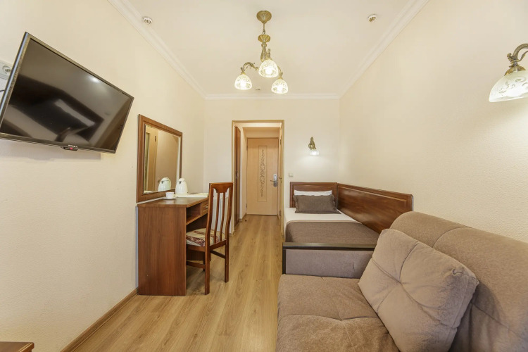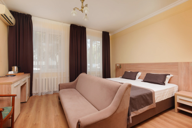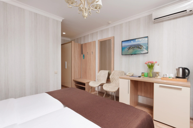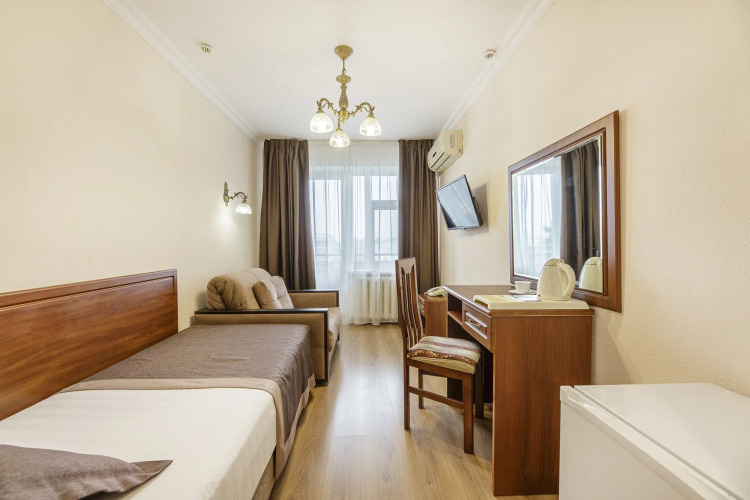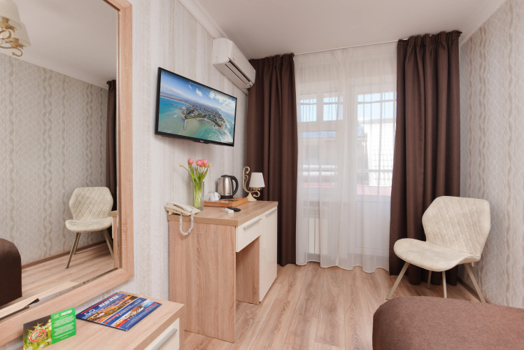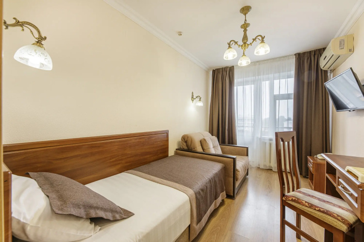 Чтобы вы могли отдохнуть после долгого дня, в номере есть телевизор. Оснащение зависит от выбранной категории номера.