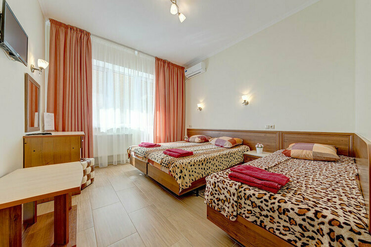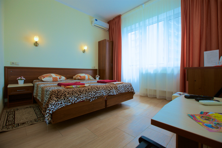 Номер оборудован двуспальной кроватью или двумя отдельно стоящими односпальными кроватями. Оснащение: сплит- система, телевизор с плоским экраном, Wi-Fi, сейф, холодильник, фен, комплект полотенец, электрочайник, посуда: графин для воды и кружки по числу проживающих в каждом номере, санузел с большой ванной, балкон с местом для сушки белья.