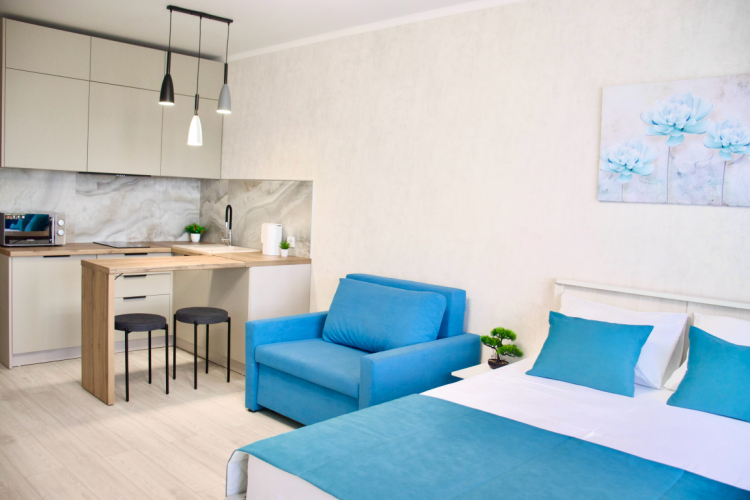 Выбор туристов, которые хотят везде чувствовать себя как дома — апартаменты «Апартаменты с бассейном у моря» расположены в Анапе. Эти апартаменты находятся 2 км от центра города. Рядом с апартаментами можно прогуляться. Неподалёку: Пляж отеля «Золотые Пески», Центральный пляж Анапы и Пляж Фотини.