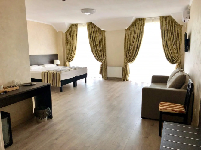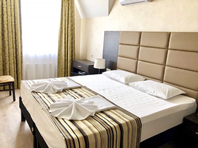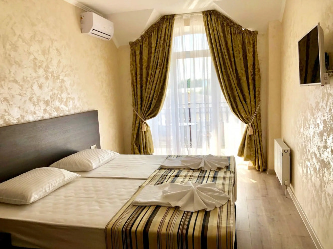 В номере вы найдёте телевизор и мини-бар. Оснащение зависит от выбранной категории номера.