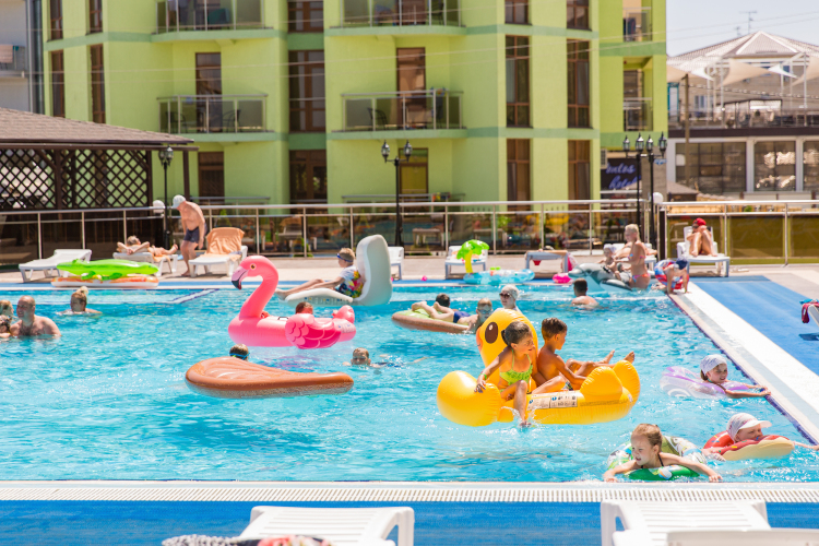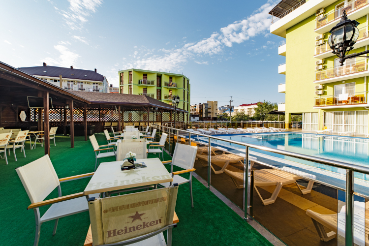 К услугам гостей большой бассейн с подогревом и гидромассажем под открытым небом, шезлонги, беседки для отдыха, летнее кафе, лобби-бар, бар у бассейна
