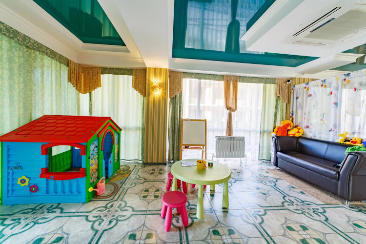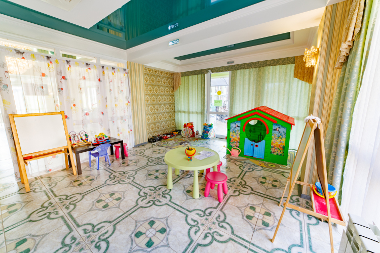 Для маленьких гостей оборудована детская площадка, детская игровая комната и два детских отделения в бассейне. Родители могут взять в прокат детские коляски, стульчики для кормления в столовой, детские кроватки, заказать услуги воспитателя.