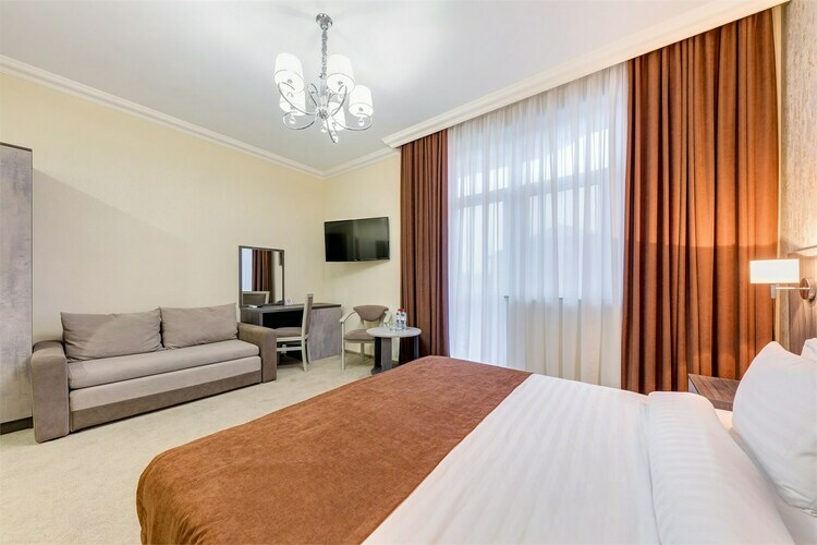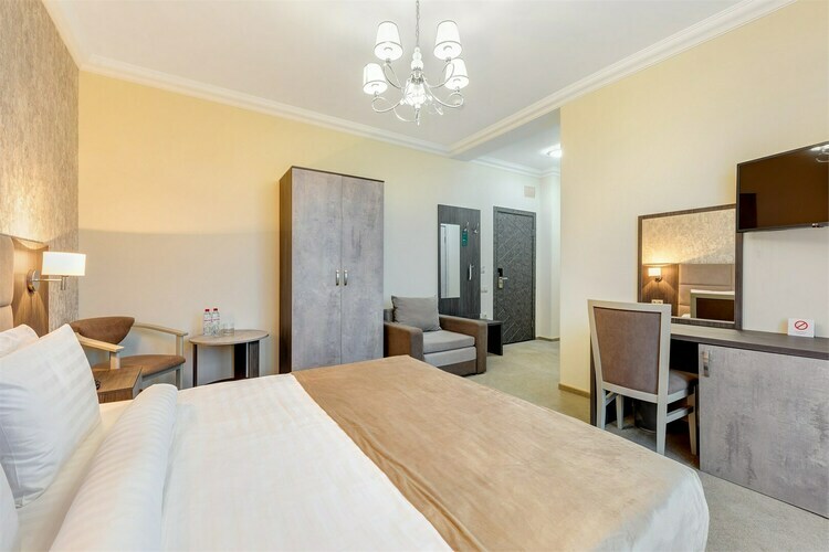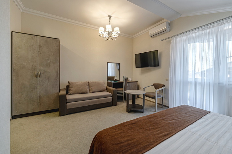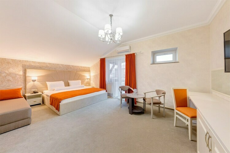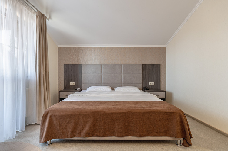 Отель состоит из нескольких корпусов с разными категориями номеров от Standart до Suite. Вам доступно 67 просторных номеров, которые порадуют Вас уютом и комфортом.