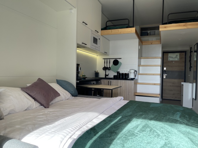 Чтобы путешествие было не только приятным, но и удобным, гости могут заказать трансфер. Удобно для гостей с ограниченными возможностями: на верхние этажи гостей поднимает лифт. Гостям доступны и другие услуги. Например, гладильные услуги. Сотрудники апартаментов поддержат беседу на русском.