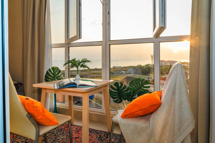 Апартаменты с Видом на Море, адрес на карте Анапа, улица Таманская, д. 121 к1, с характеристиками номеров и доступностью онлайн бронирования на площадке vashotel.ru , стоимость проживания и удобства.