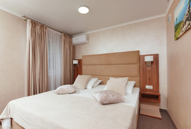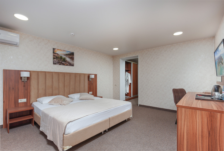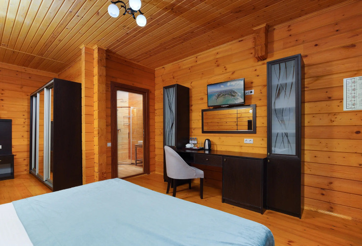 В номере вас будут ждать телевизор, халат и тапочки. Перечисленные услуги есть не во всех номерах.