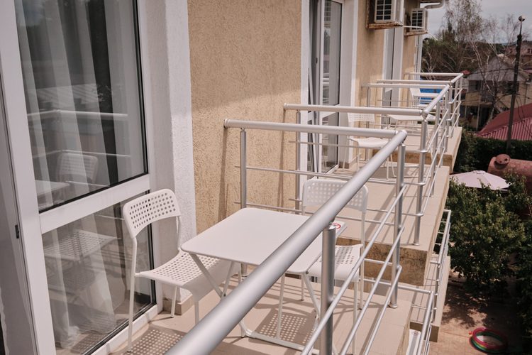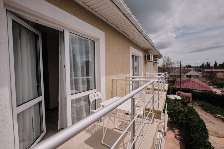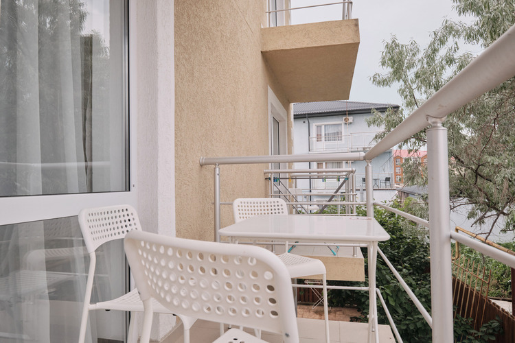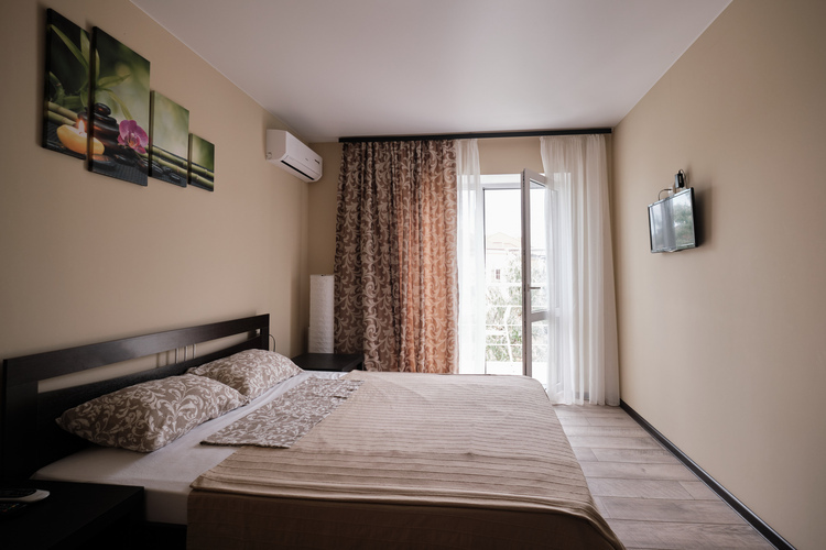 Уютный двухместный номер с балконом. Номер оснащен: двуспальная кровать или две односпальные кровати, шкаф-купе, зеркало в полный рост, сейф вешалка, обувница, журнальный столик, торшер, ТВ, кондиционер, сушка. Ванная комната (ванная, туалет, раковина, зеркало) В номере имеется балкон с зоной отдыха.
