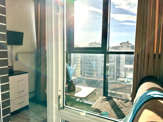 Апартаменты Студия Ленина 185А 12/19, адрес на карте Анапа, улица Ленина, д.185А/4, с описанием номеров и возможностью онлайн бронирования на ресурсе vashotel.ru , стоимость проживания и удобства.