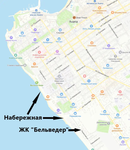 адрес на карте Анапа, улица Таманская, д.121, с характеристиками