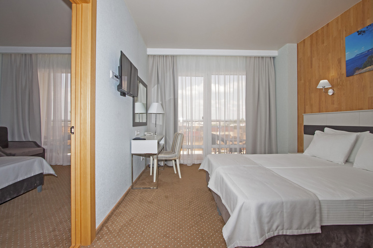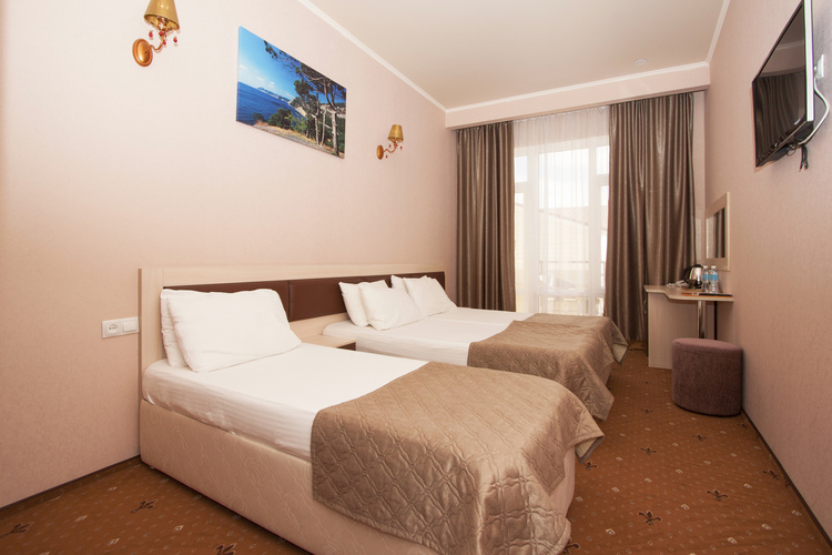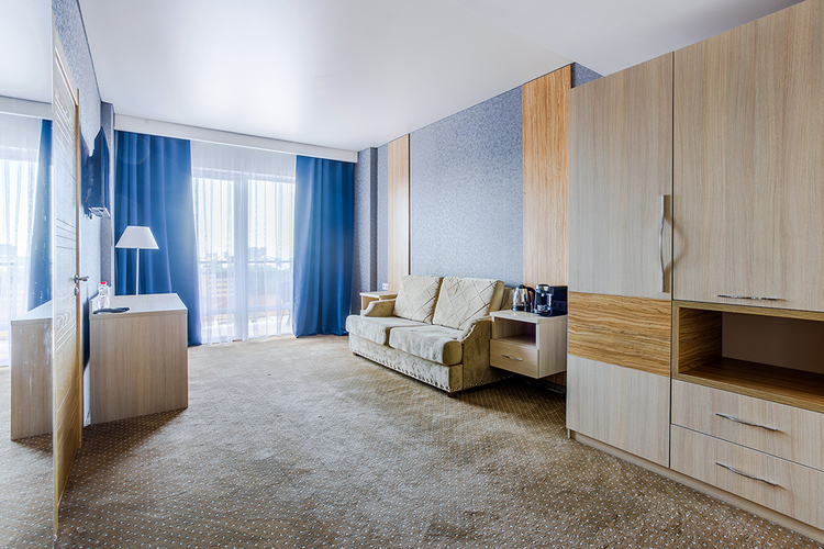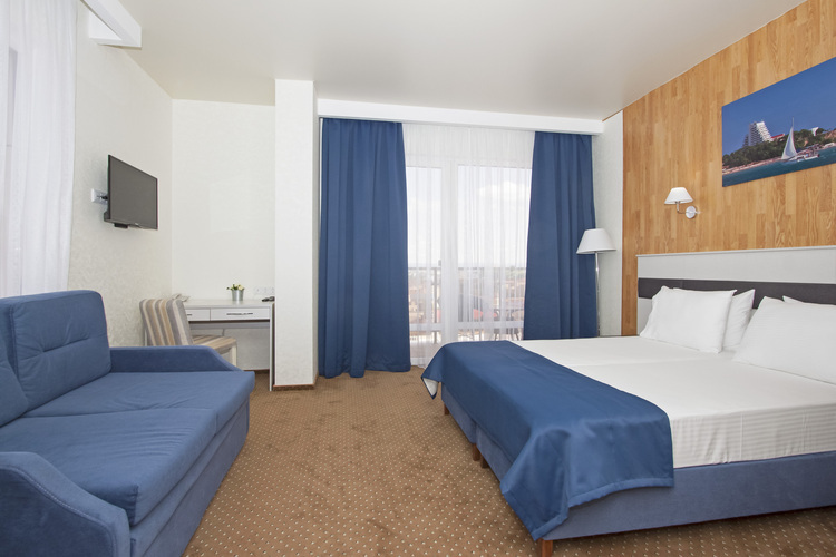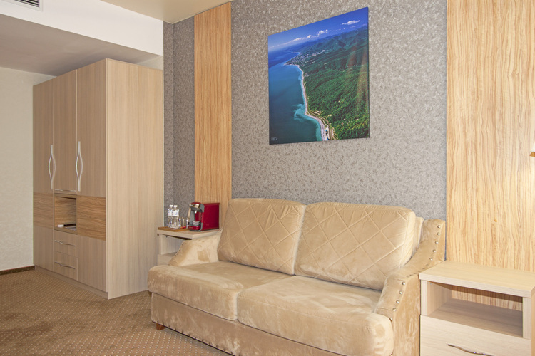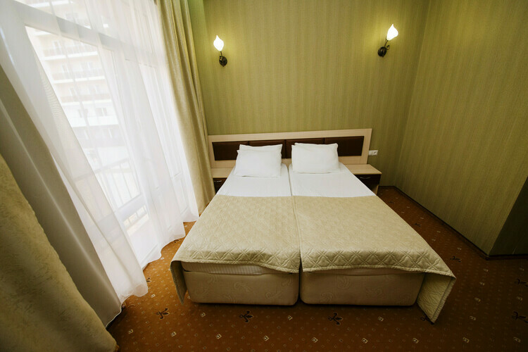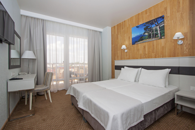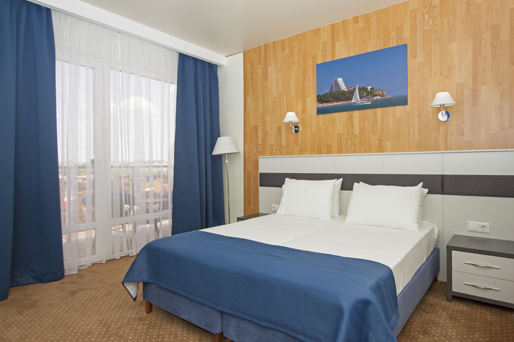 2-х комнатный номер для двух гостей с возможностью предоставления 2-х дополнительных мест (диван-кровать). Номера расположены в 1 корпусе, с видом на море, на верхних этажах (8-9-10).