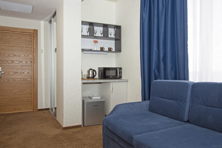 Улучшенный номер (с мини-кухней) для двух гостей, с возможностью предоставления 1 дополнительного места (мини-диван). Номер идеально подходит для размещения молодых семей с грудным ребенком. Номера расположены в 1 корпусе.