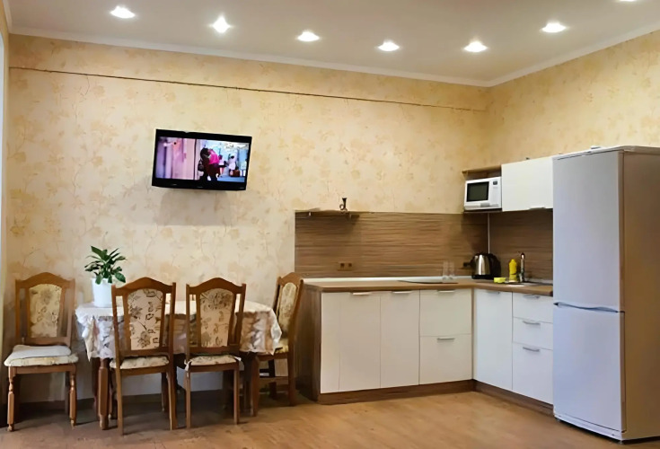 В номере вы найдёте телевизор. Оснащение зависит от выбранной категории номера.