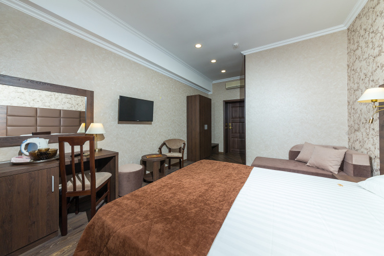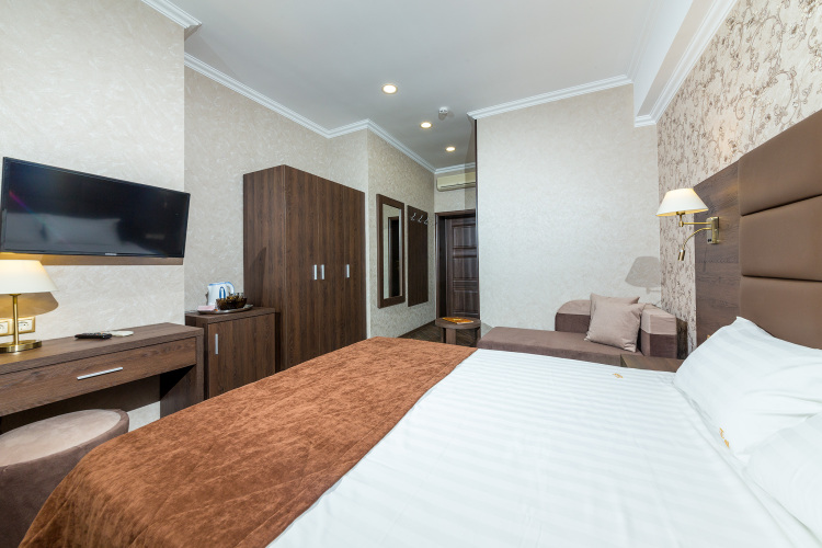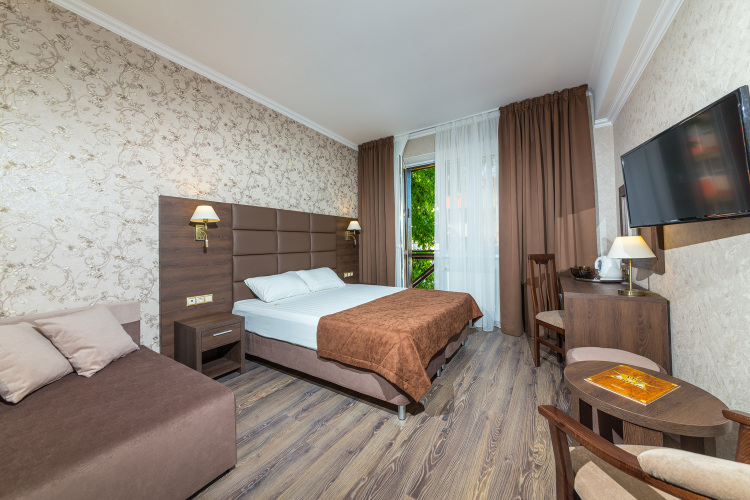 Отель Три Мушкетера, адрес на карте Анапа, улица Горького, д.34, с характеристиками номеров и доступностью онлайн бронирования на площадке vashotel.ru , стоимость проживания и удобства.