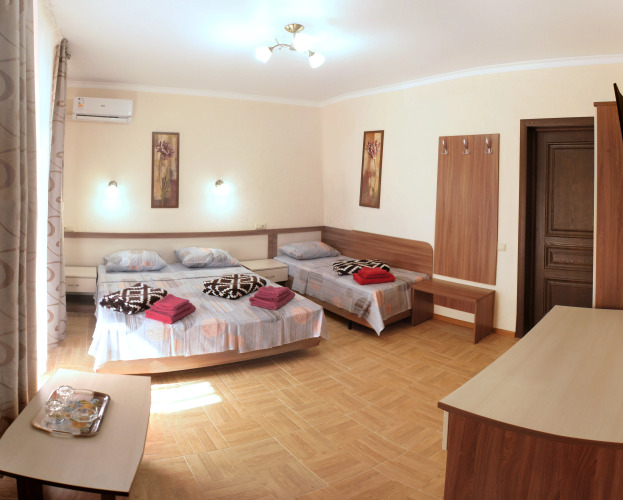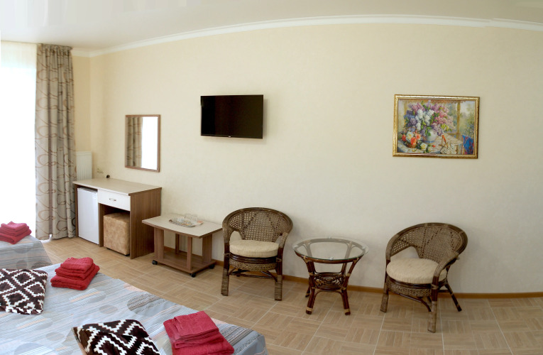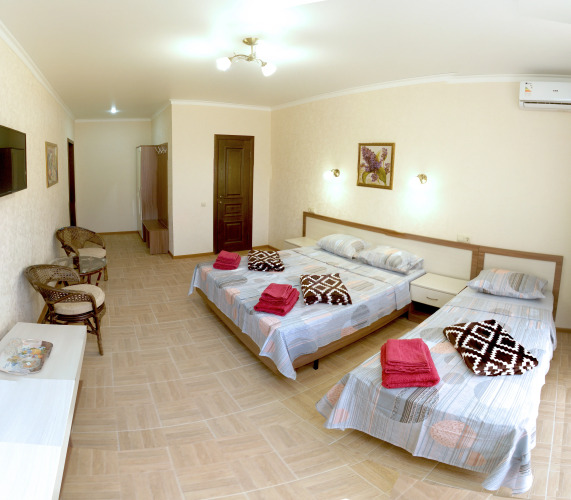 Отель ТриО, адрес на карте Анапа, улица Азовская, д. 57, с характеристиками номеров и возможностью онлайн бронирования на ресурсе vashotel.ru , цены проживания и удобства.