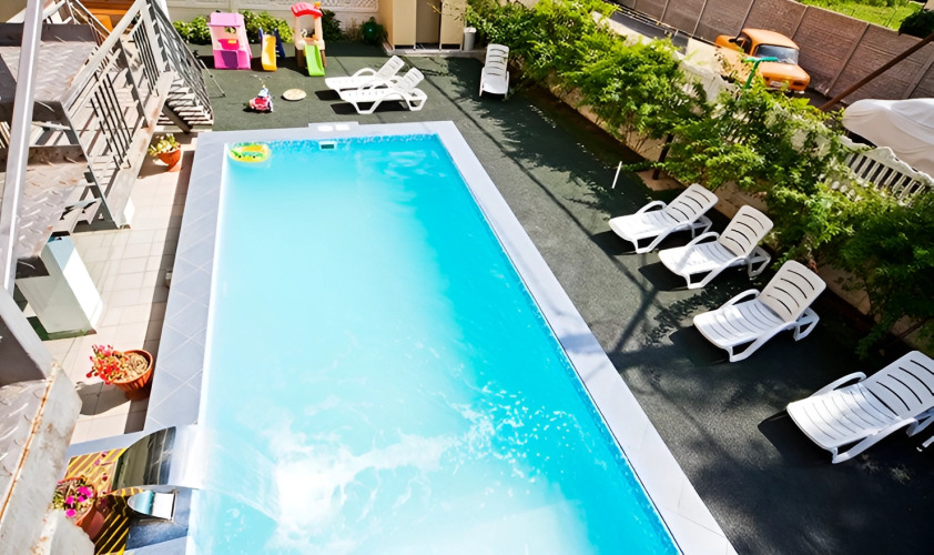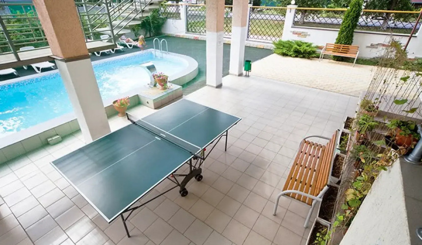 На территории отеля есть открытый бассейн, шезлонги и детская площадка. Помимо прочих услуг, в отеле есть настольный теннис и аниматоры.