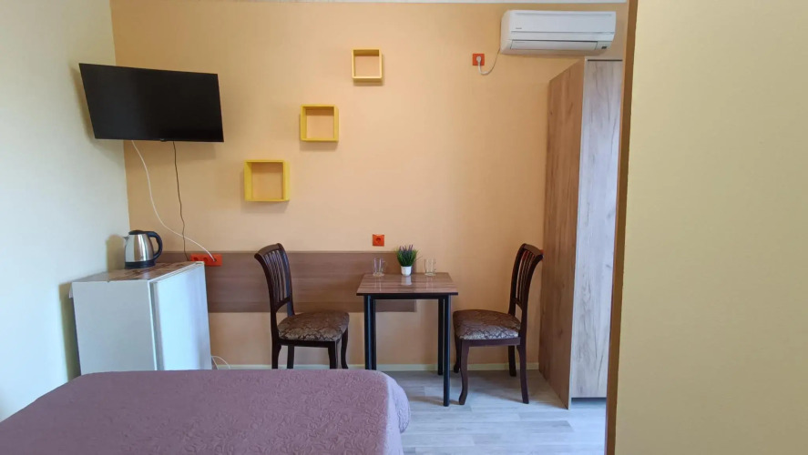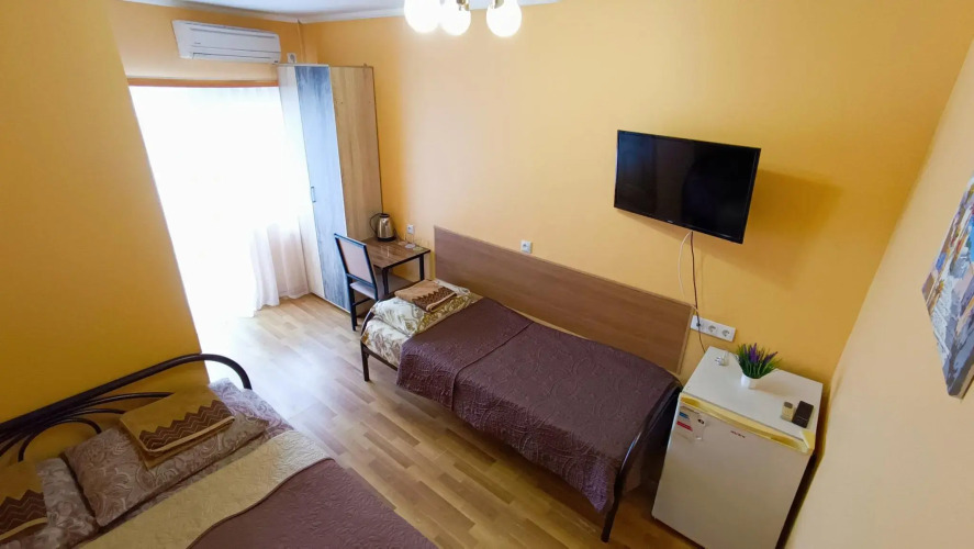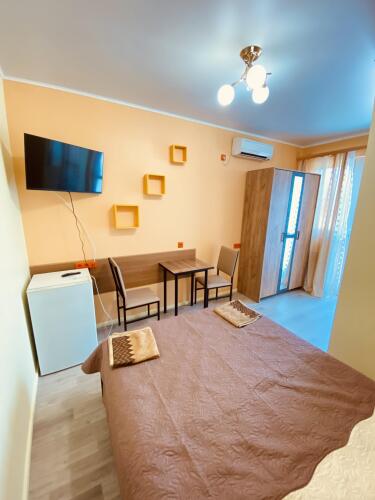 Номер уютно обставлен и оснащён необходимым, чтобы отдохнуть после долгого и насыщенного дня. Имеются телевизор. Оснащение зависит от выбранной категории номера.