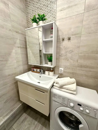В распоряжении гостей: телевизор, холодильник, микроволновая печь, варочная панель, электрочайник, утюг и гладильная доска, стиральная машина, посуда для приготовления еды и сервировки стола, кровать и выдвижной диван, интернет, спальные принадлежности.